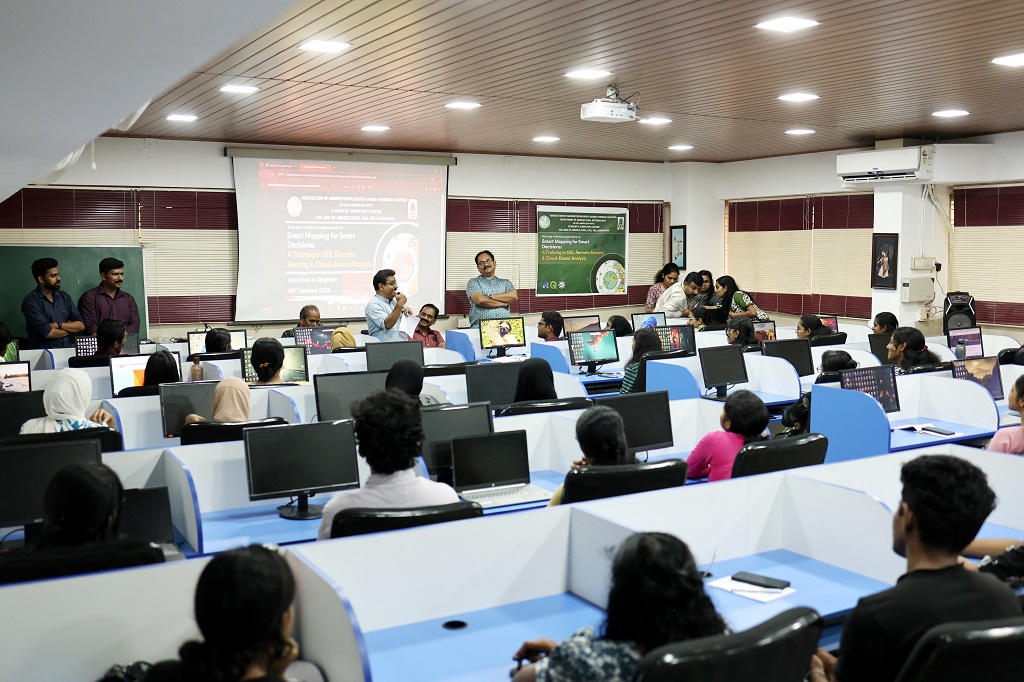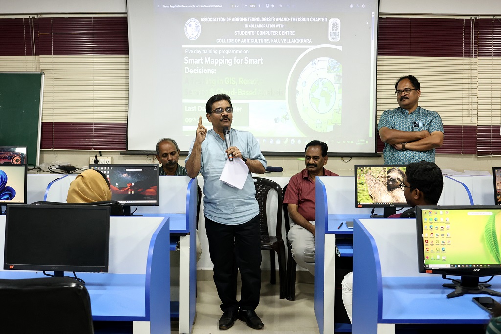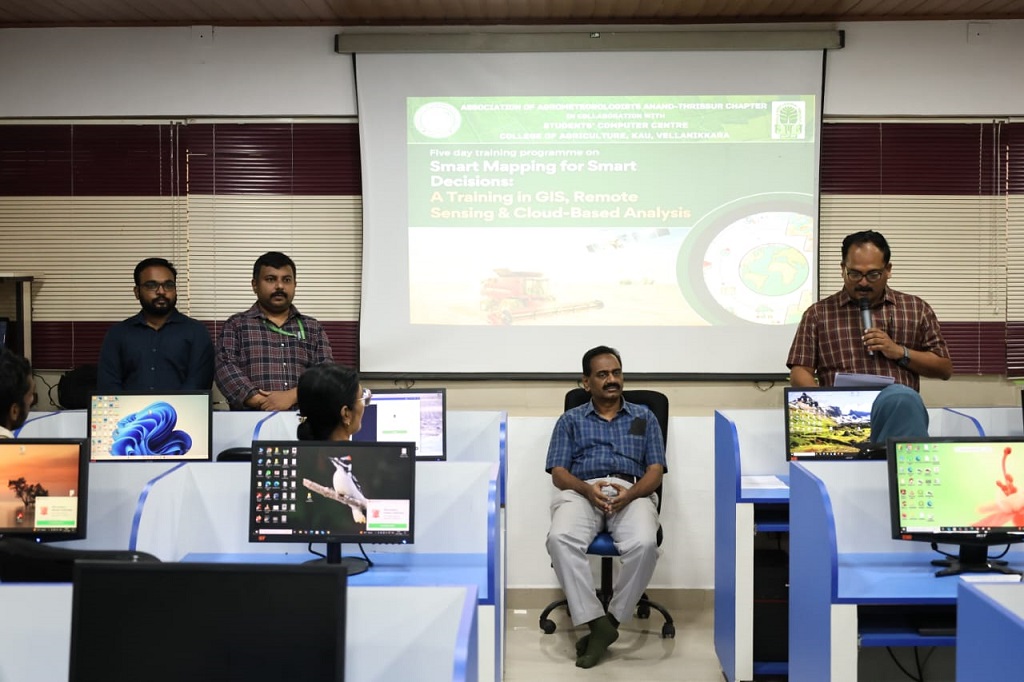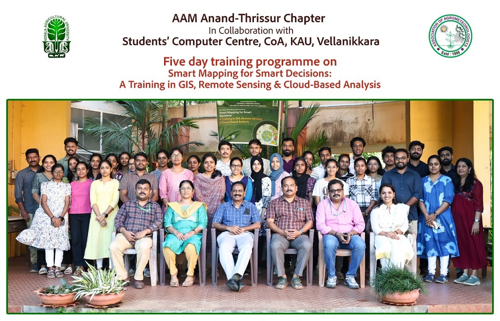 A five day training programme on “Smart Mapping for Smart Decisions: A Training in GIS, Remote Sensing & Cloud-Based Analysis” was organised from 12th to 16th January 2026 by the Association of Agrometeorologists, Anand–Thrissur Chapter, Department of Agricultural Meteorology, College of Agriculture, Vellanikkara, in collaboration with the Students' Computer Centre, College of Agriculture, Vellanikkara.